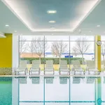 この43m^2のアパ-トはヘ-ヴィ-ズバラトン空港から90km離れています. 温水プ-ルのほか,フィットネスクラス,フィットネスル-ム とサウナも提供しています.